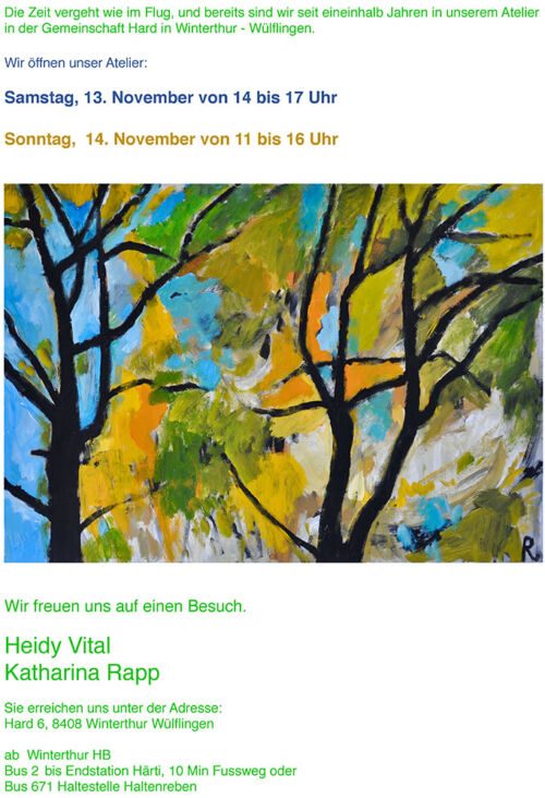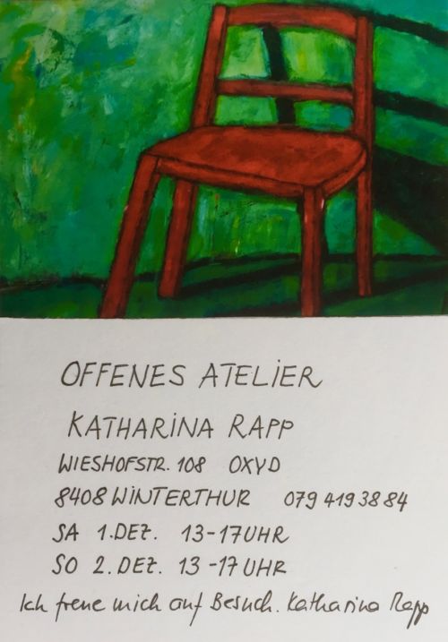 Mein Atelier ist in den Oxyd Kunsträumen, Eingang über den Garten und die Eisentreppe im 1. Stock.