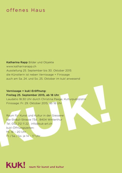 Vernissage und kuk! Eröffnung Freitag 25. September 2015, ab 18 Uhr