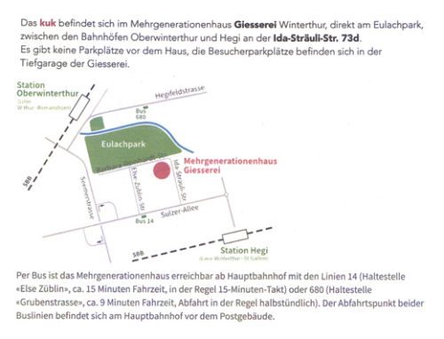 Bus 2 bis Endstation Härti, 10 Min Fussweg oder