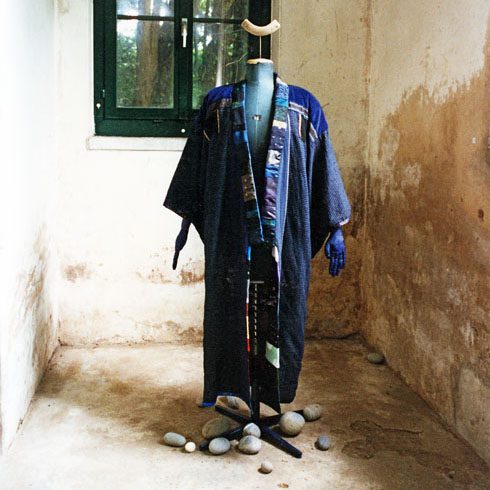 Hülle . 1996 . Papiermaché, Stoffreste, Pflanzenteile