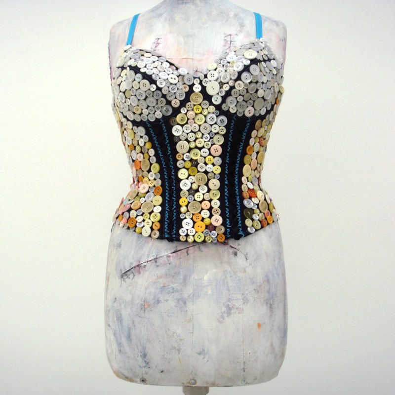 Brustpanzer . 2008 . Schneiderpuppe, Mieder, Knöpfe