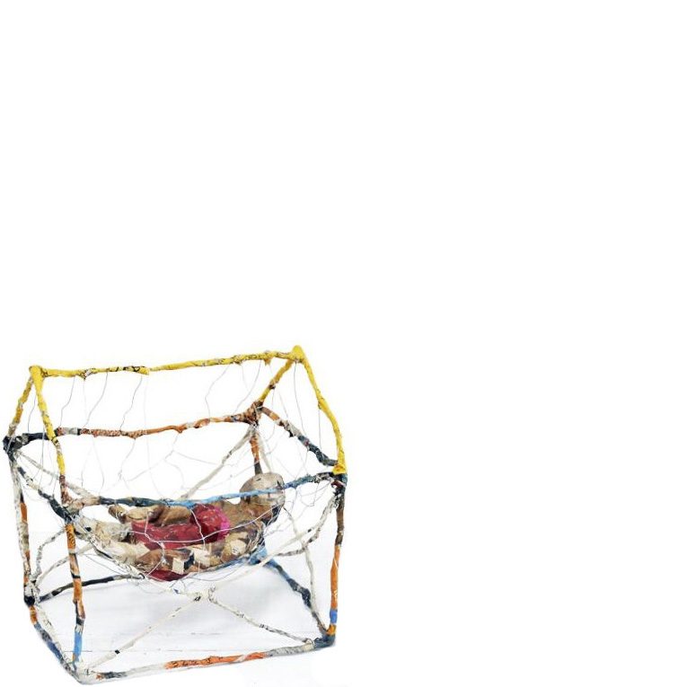 Sonntag . 2009 . Draht, Sonntagszeitung, Kleister . 20 x 22 x 17 cm