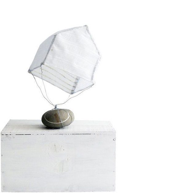 Lufthaus . 2004 . Tüll, versteift, Draht, Stein . ca. 30 x 30 x 20 cm