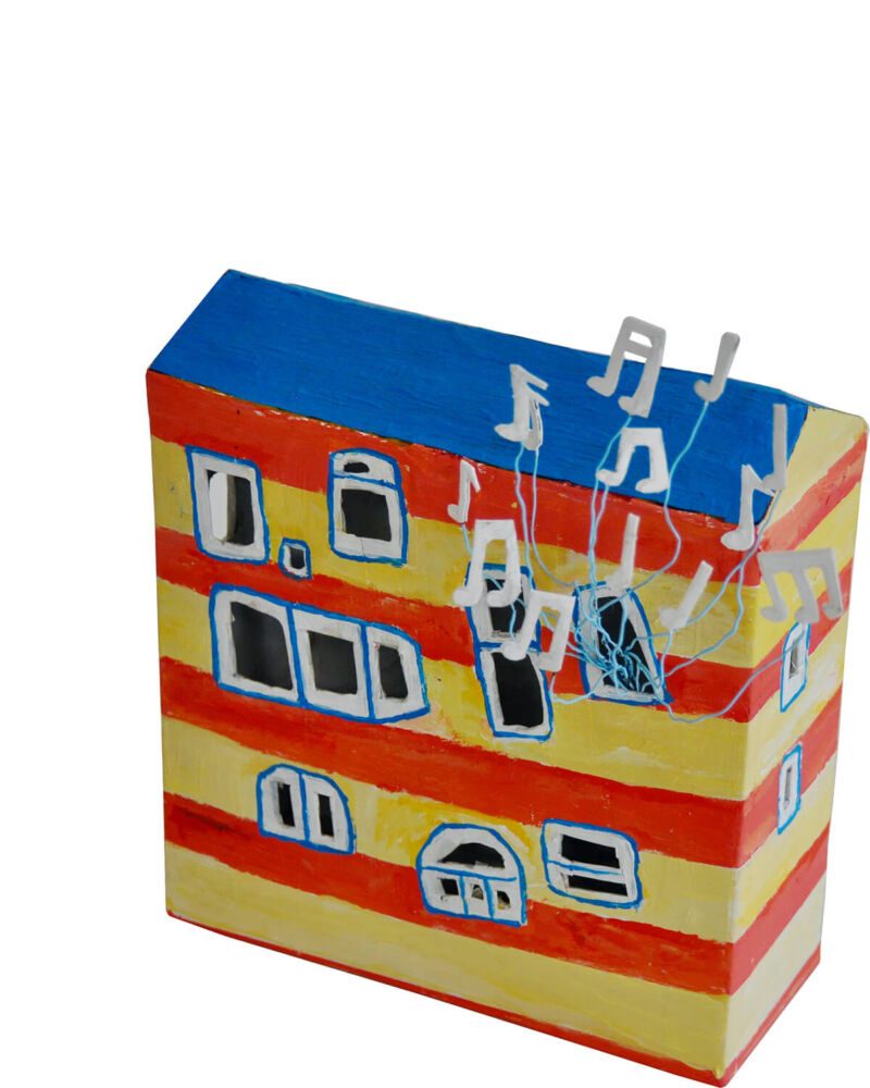 Musikhaus . 2021 . Karton, Acryl, Leim, Draht . ca. 25 x 19 x 8 cm