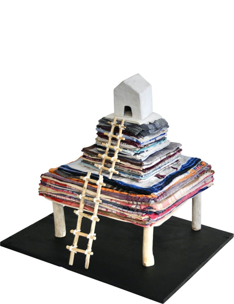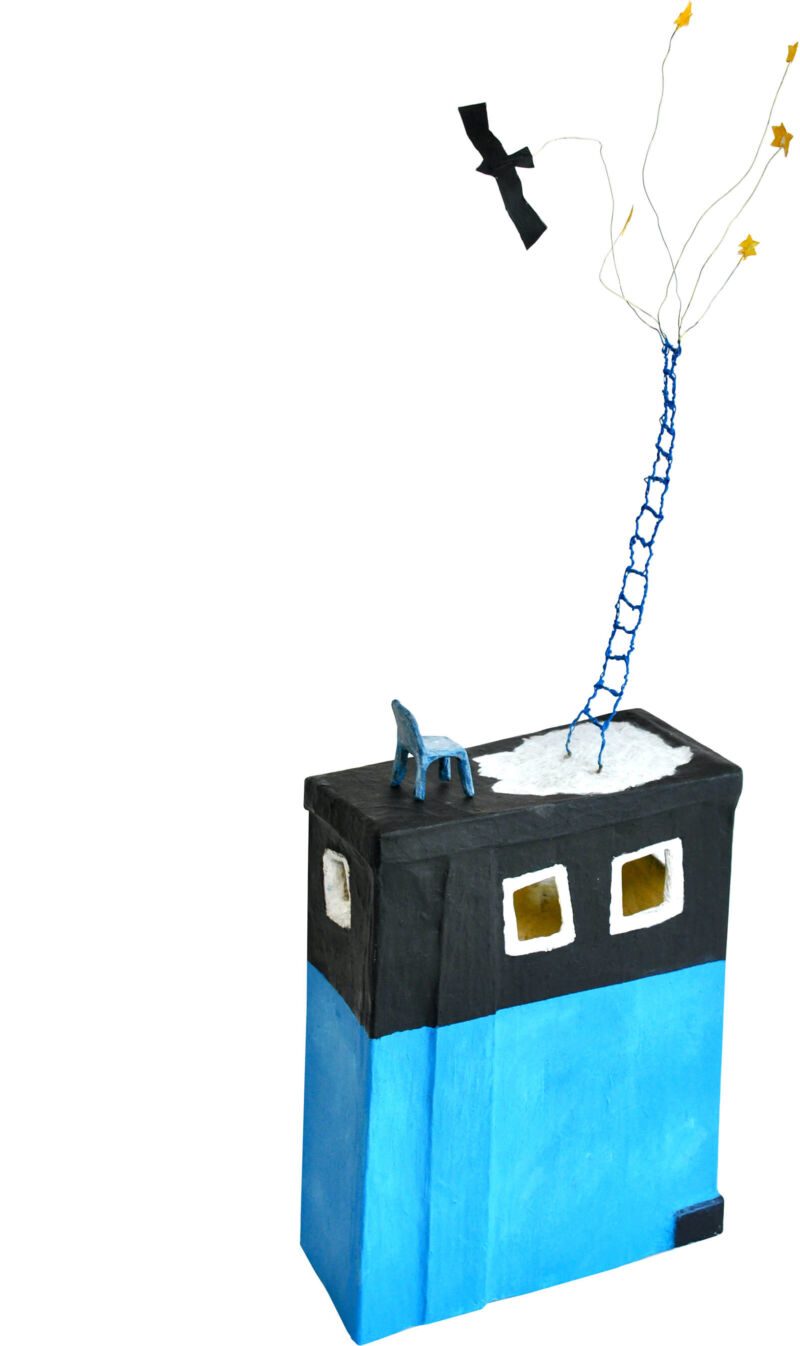 Himmelsleiter . 2021 . Karton, Papier, Draht, Acrylfarbe, Leim . 75 x 24 x 11 x cm