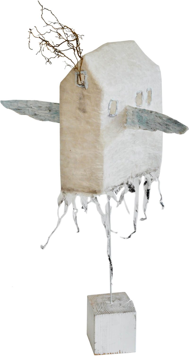 Abgehoben . 2018 . Pergamentpapier, Leim, Draht, Farbe, Holz . ca. 72 x 42 x 40 cm