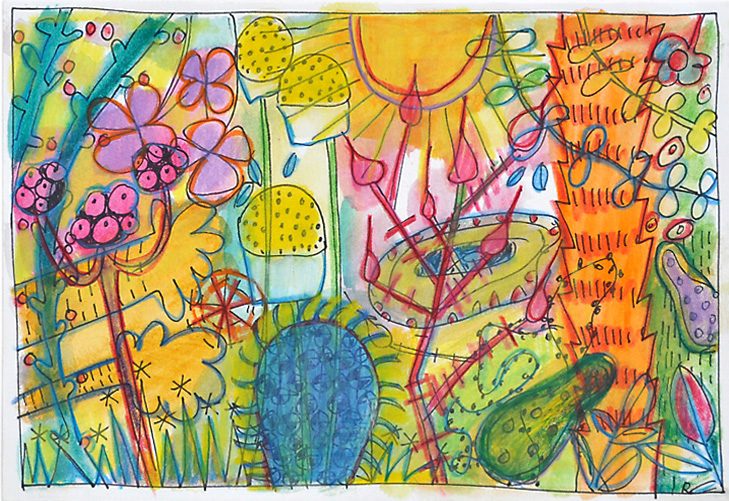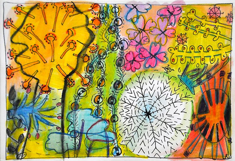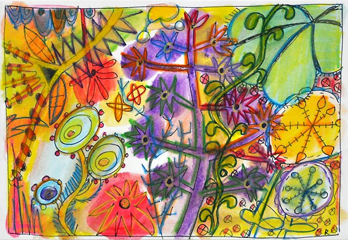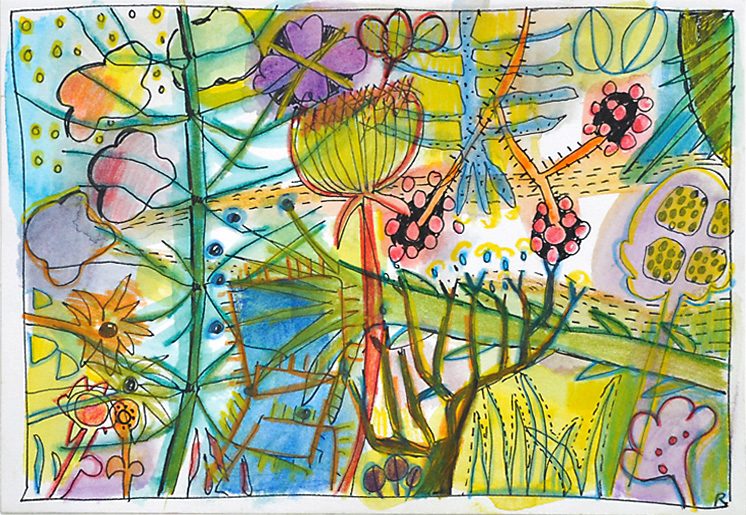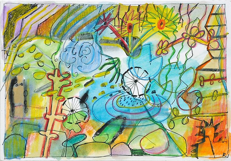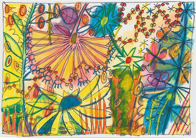 Sommerblumen (aus 12er-Serie) . 2006 . Tuschestift, Aquarellfarbstift . 12,5 x 18 cm