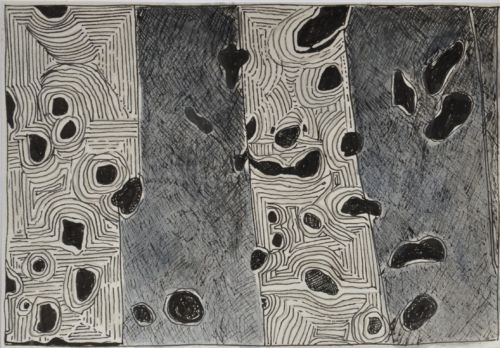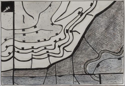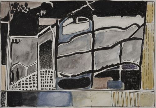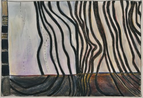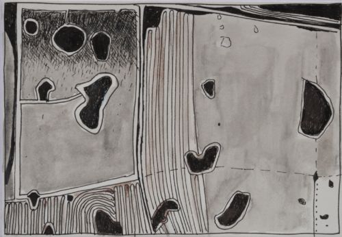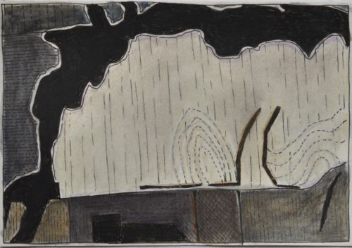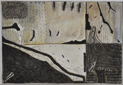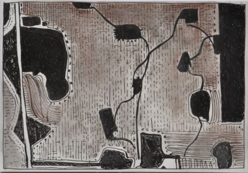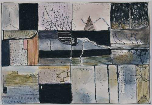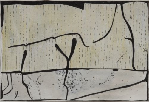Erdzeichen . 2013 . Tuschestift, Aquarellfarbstift auf Papier . 12,5 x 18 cm